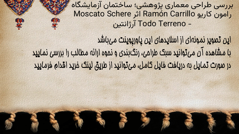 پاورپوینت کامل بررسی طراحی معماری پژوهشی؛ ساختمان آزمایشگاه رامون کاریو Ramón Carrillo اثر Moscato Schere Todo Terreno – آرژانتین