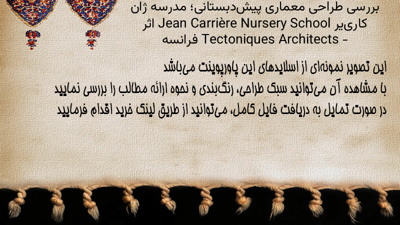 پاورپوینت کامل بررسی طراحی معماری پیشدبستانی؛ مدرسه ژان کارییر Jean Carrière Nursery School اثر Tectoniques Architects – فرانسه