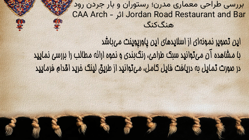 پاورپوینت کامل بررسی طراحی معماری مدرن؛ رستوران و بار جردن رود Jordan Road Restaurant and Bar اثر CAA Arch – هنگکنگ
