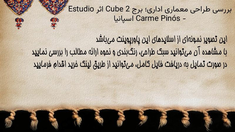 پاورپوینت کامل بررسی طراحی معماری اداری؛ برج Cube 2 اثر Estudio Carme Pinós – اسپانیا