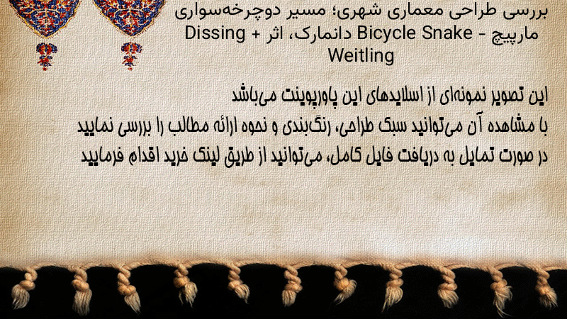 پاورپوینت کامل بررسی طراحی معماری شهری؛ مسیر دوچرخهسواری مارپیچ Bicycle Snake – دانمارک، اثر Dissing + Weitling