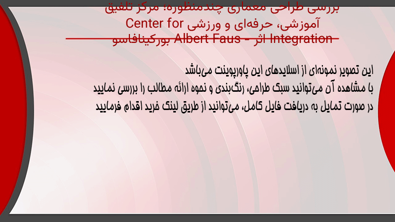 پاورپوینت کامل بررسی طراحی معماری چندمنظوره؛ مرکز تلفیق آموزشی، حرفهای و ورزشی Center for Integration اثر Albert Faus – بورکینافاسو