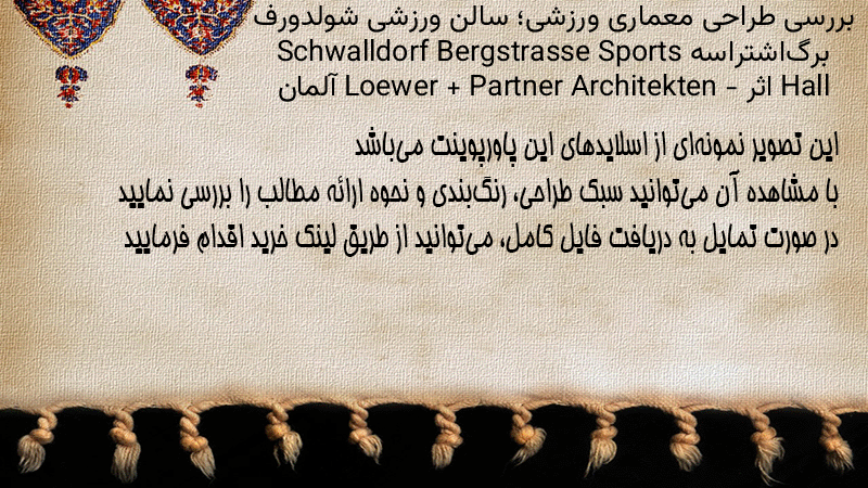 پاورپوینت کامل بررسی طراحی معماری ورزشی؛ سالن ورزشی شولدورف برگاشتراسه Schwalldorf Bergstrasse Sports Hall اثر Loewer + Partner Architekten – آلمان