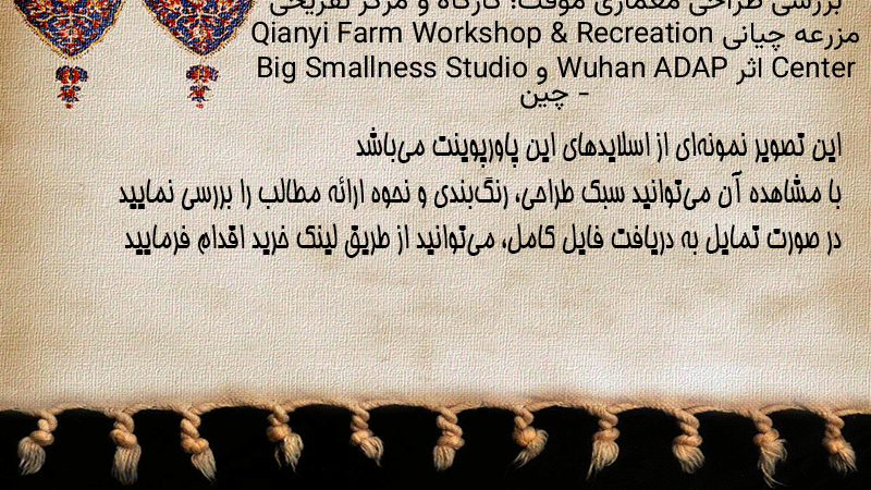 پاورپوینت کامل بررسی طراحی معماری موقت؛ کارگاه و مرکز تفریحی مزرعه چیانی Qianyi Farm Workshop & Recreation Center اثر Wuhan ADAP و Big Smallness Studio – چین