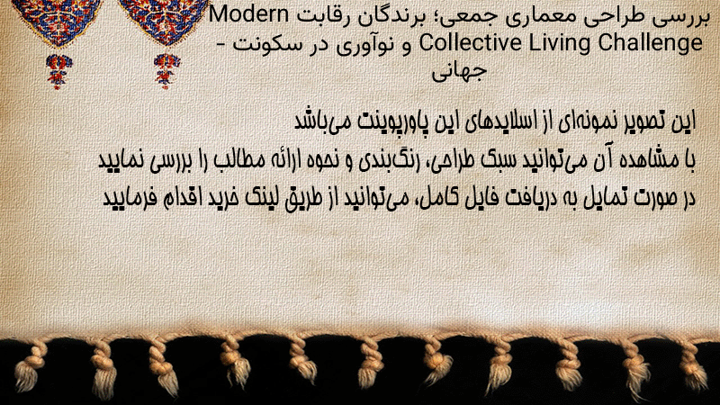 پاورپوینت کامل بررسی طراحی معماری جمعی؛ برندگان رقابت Modern Collective Living Challenge و نوآوری در سکونت – جهانی