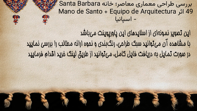 پاورپوینت کامل بررسی طراحی معماری معاصر؛ خانه Santa Barbara 49 اثر Mano de Santo + Equipo de Arquitectura – اسپانیا