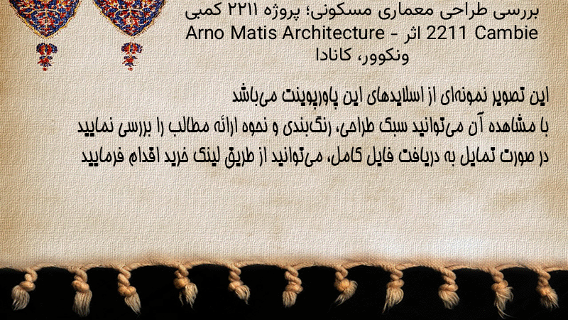 پاورپوینت کامل بررسی طراحی معماری مسکونی؛ پروژه ۲۲۱۱ کمبی ۲۲۱۱ Cambie اثر Arno Matis Architecture – ونکوور، کانادا