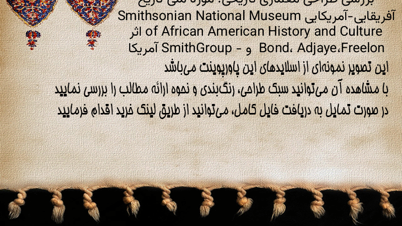 پاورپوینت کامل بررسی طراحی معماری تاریخی؛ موزه ملی تاریخ آفریقایی-آمریکایی Smithsonian National Museum of African American History and Culture اثر Freelon، Adjaye، Bond و SmithGroup – آمریکا