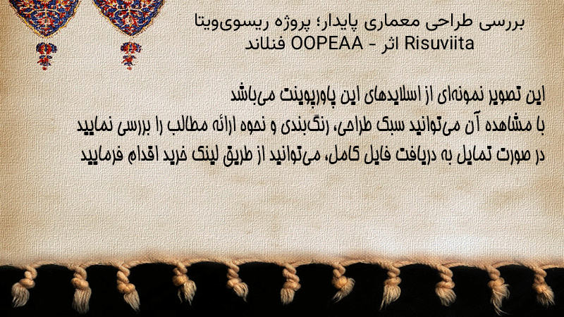 پاورپوینت کامل بررسی طراحی معماری پایدار؛ پروژه ریسویویتا Risuviita اثر OOPEAA – فنلاند