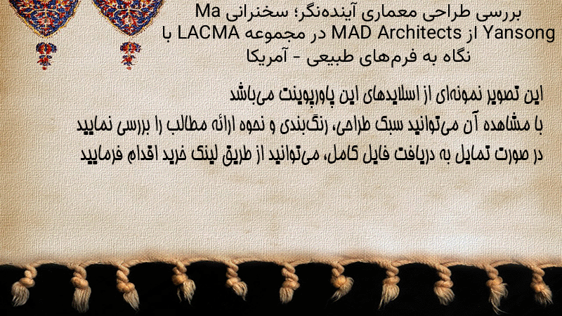 پاورپوینت کامل بررسی طراحی معماری آیندهنگر؛ سخنرانی Ma Yansong از MAD Architects در مجموعه LACMA با نگاه به فرمهای طبیعی – آمریکا