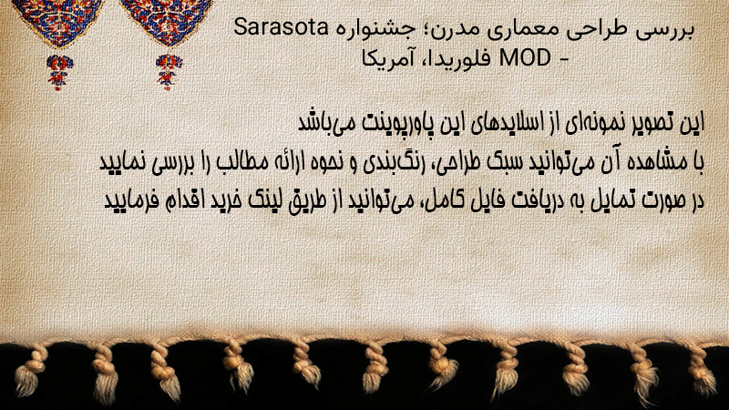 پاورپوینت کامل بررسی طراحی معماری مدرن؛ جشنواره Sarasota MOD – فلوریدا، آمریکا