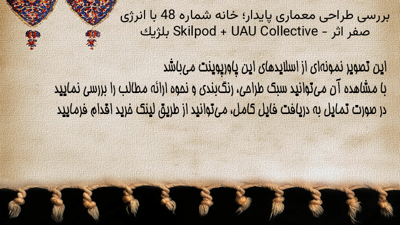 پاورپوینت کامل بررسی طراحی معماری پایدار؛ خانه شماره ۴۸ با انرژی صفر اثر Skilpod + UAU Collective – بلژیک