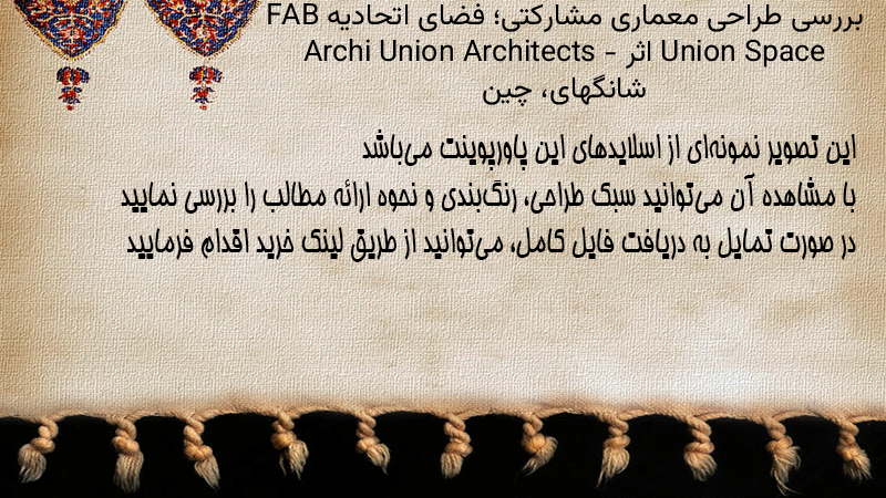 پاورپوینت کامل بررسی طراحی معماری مشارکتی؛ فضای اتحادیه FAB Union Space اثر Archi Union Architects – شانگهای، چین