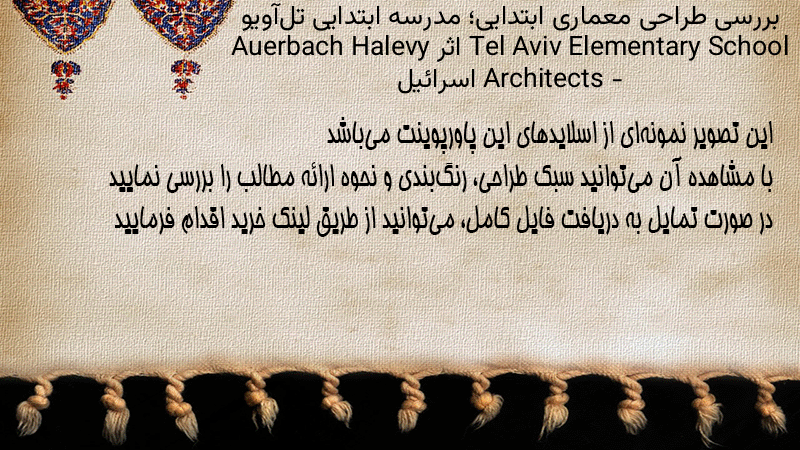 پاورپوینت کامل بررسی طراحی معماری ابتدایی؛ مدرسه ابتدایی تلآویو Tel Aviv Elementary School اثر Auerbach Halevy Architects – اسرائیل
