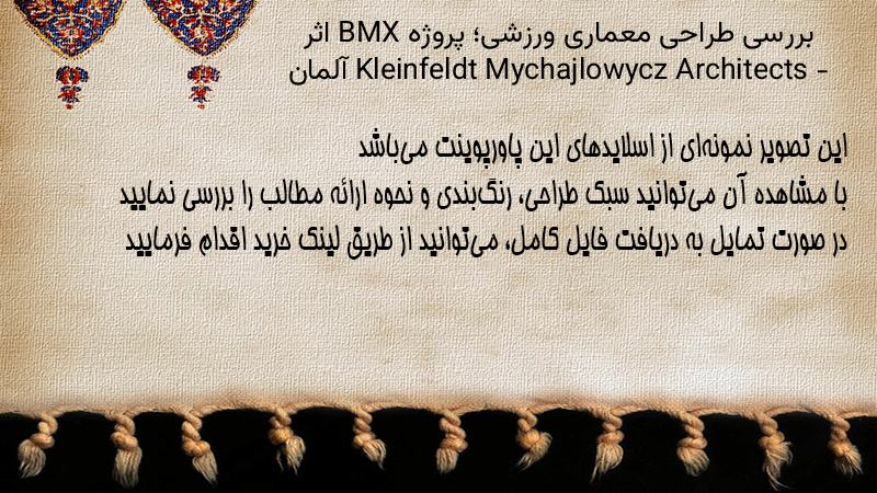 پاورپوینت کامل بررسی طراحی معماری ورزشی؛ پروژه BMX اثر Kleinfeldt Mychajlowycz Architects – آلمان