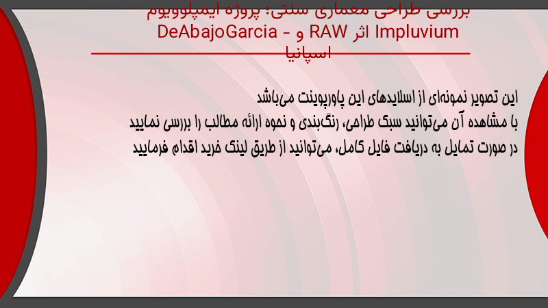 پاورپوینت کامل بررسی طراحی معماری سنتی؛ پروژه ایمپلوویوم Impluvium اثر RAW و DeAbajoGarcia – اسپانیا