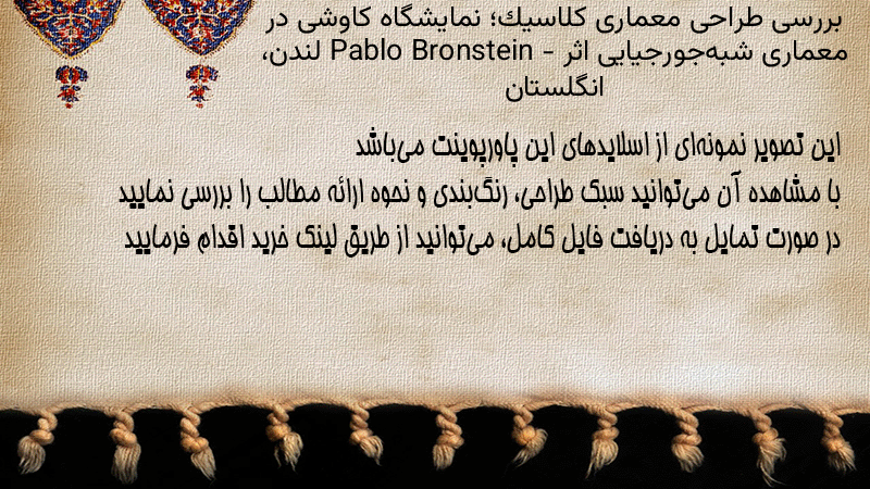 پاورپوینت کامل بررسی طراحی معماری کلاسیک؛ نمایشگاه کاوشی در معماری شبهجورجیایی اثر Pablo Bronstein – لندن، انگلستان