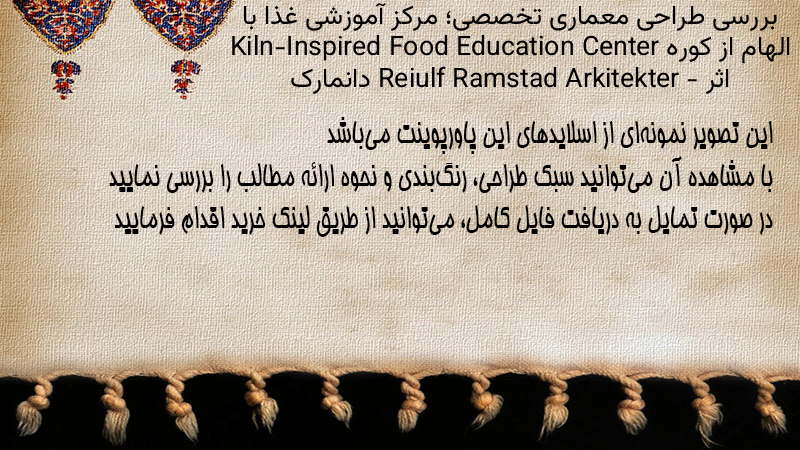 پاورپوینت کامل بررسی طراحی معماری تخصصی؛ مرکز آموزشی غذا با الهام از کوره Kiln-Inspired Food Education Center اثر Reiulf Ramstad Arkitekter – دانمارک