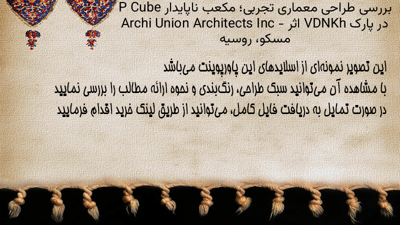 پاورپوینت کامل بررسی طراحی معماری تجربی؛ مکعب ناپایدار P Cube در پارک VDNKh اثر Archi Union Architects Inc – مسکو، روسیه