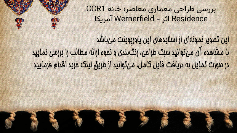 پاورپوینت کامل بررسی طراحی معماری معاصر؛ خانه CCR1 Residence اثر Wernerfield – آمریکا