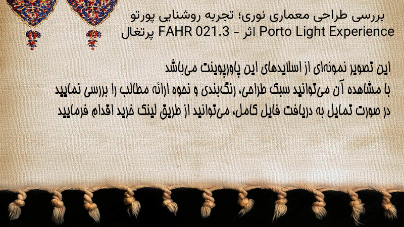 پاورپوینت کامل بررسی طراحی معماری نوری؛ تجربه روشنایی پورتو Porto Light Experience اثر FAHR 021.3 – پرتغال