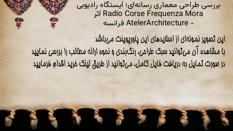 پاورپوینت کامل بررسی طراحی معماری رسانهای؛ ایستگاه رادیویی Radio Corse Frequenza Mora اثر AtelerArchitecture – فرانسه
