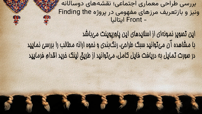 پاورپوینت کامل بررسی طراحی معماری اجتماعی؛ نقشههای دوسالانه ونیز و بازتعریف مرزهای مفهومی در پروژه Finding the Front – ایتالیا