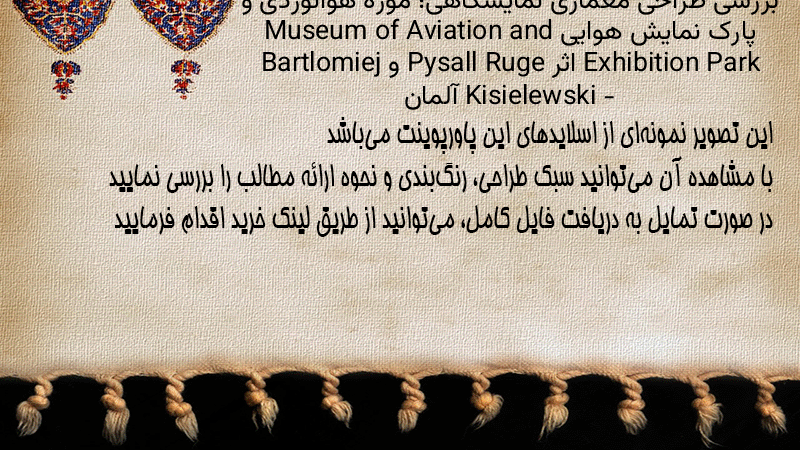 پاورپوینت کامل بررسی طراحی معماری نمایشگاهی؛ موزه هوانوردی و پارک نمایش هوایی Museum of Aviation and Exhibition Park اثر Pysall Ruge و Bartlomiej Kisielewski – آلمان