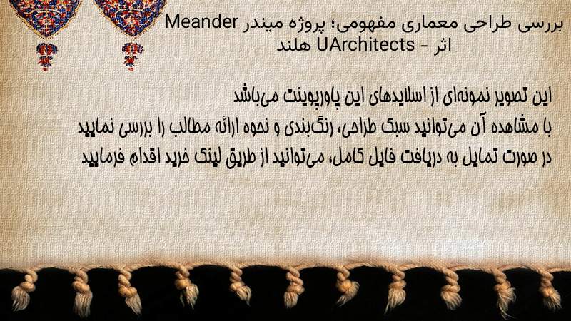 پاورپوینت کامل بررسی طراحی معماری مفهومی؛ پروژه میندر Meander اثر UArchitects – هلند