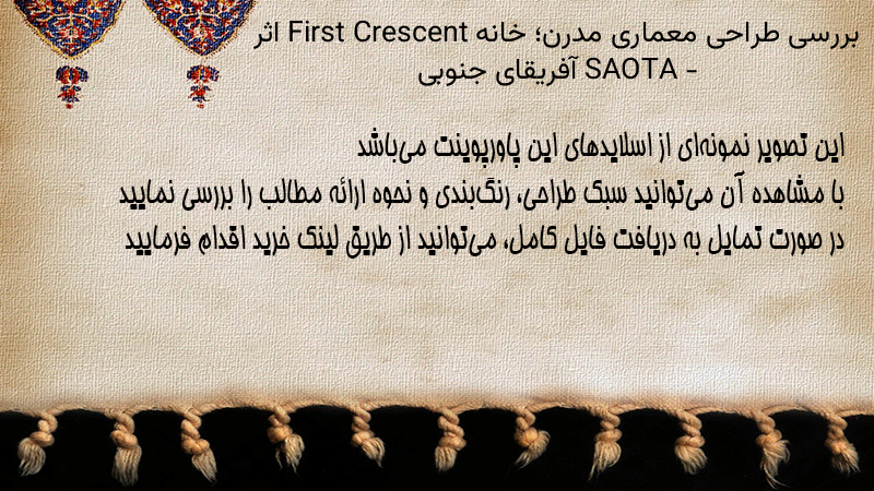پاورپوینت کامل بررسی طراحی معماری مدرن؛ خانه First Crescent اثر SAOTA – آفریقای جنوبی