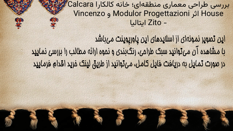 پاورپوینت کامل بررسی طراحی معماری منطقهای؛ خانه کالکارا Calcara House اثر Modulor Progettazioni و Vincenzo Zito – ایتالیا