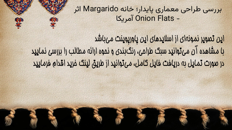 پاورپوینت کامل بررسی طراحی معماری پایدار؛ خانه Margarido اثر Onion Flats – آمریکا