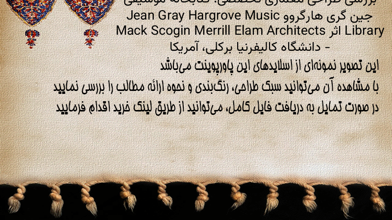 پاورپوینت کامل بررسی طراحی معماری تخصصی؛ کتابخانه موسیقی جین گری هارگروو Jean Gray Hargrove Music Library اثر Mack Scogin Merrill Elam Architects – دانشگاه کالیفرنیا برکلی، آمریکا