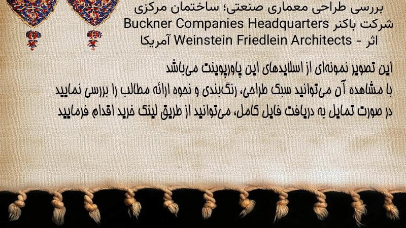 پاورپوینت کامل بررسی طراحی معماری صنعتی؛ ساختمان مرکزی شرکت باکنر Buckner Companies Headquarters اثر Weinstein Friedlein Architects – آمریکا