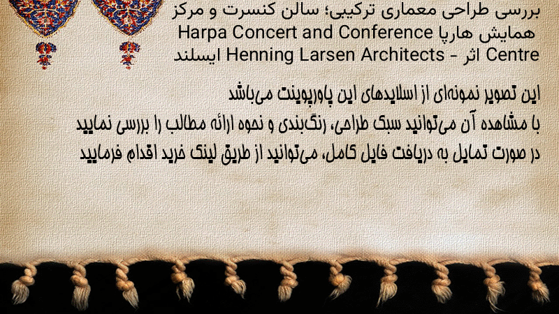 پاورپوینت کامل بررسی طراحی معماری ترکیبی؛ سالن کنسرت و مرکز همایش هارپا Harpa Concert and Conference Centre اثر Henning Larsen Architects – ایسلند