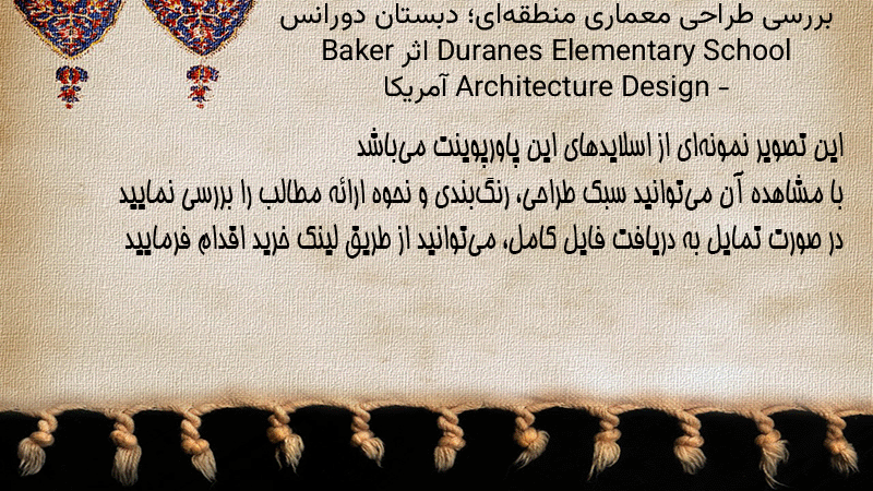 پاورپوینت کامل بررسی طراحی معماری منطقهای؛ دبستان دورانس Duranes Elementary School اثر Baker Architecture Design – آمریکا