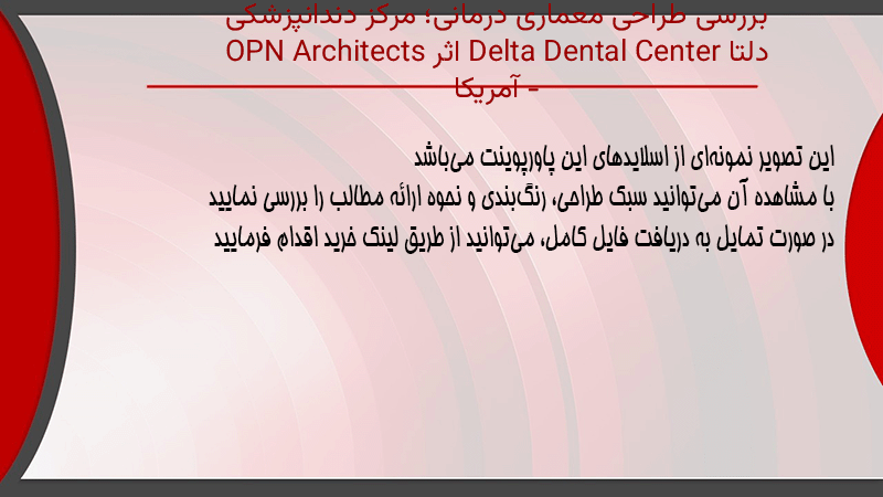 پاورپوینت کامل بررسی طراحی معماری درمانی؛ مرکز دندانپزشکی دلتا Delta Dental Center اثر OPN Architects – آمریکا