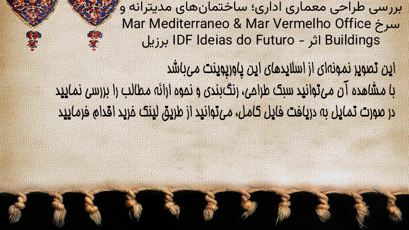 پاورپوینت کامل بررسی طراحی معماری اداری؛ ساختمانهای مدیترانه و سرخ Mar Mediterraneo & Mar Vermelho Office Buildings اثر IDF Ideias do Futuro – برزیل