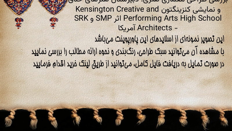 پاورپوینت کامل بررسی طراحی معماری هنری؛ دبیرستان هنرهای خلاق و نمایشی کنزینگتون Kensington Creative and Performing Arts High School اثر SMP و SRK Architects – آمریکا