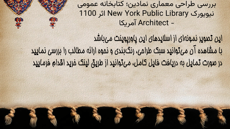 پاورپوینت کامل بررسی طراحی معماری نمادین؛ کتابخانه عمومی نیویورک New York Public Library اثر ۱۱۰۰ Architect – آمریکا
