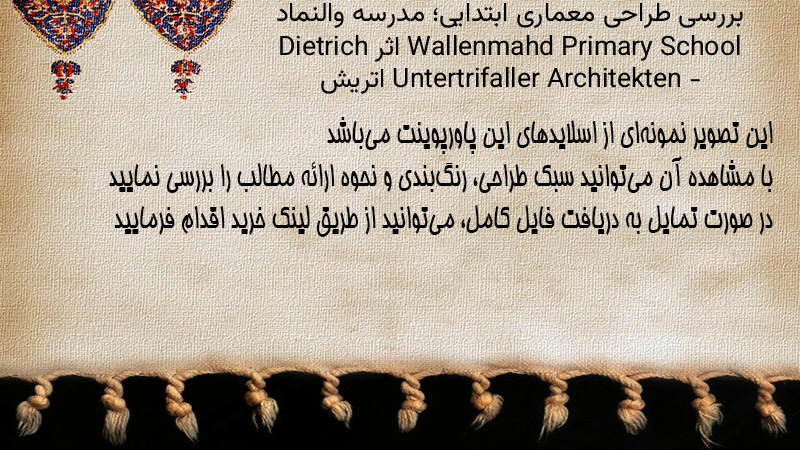پاورپوینت کامل بررسی طراحی معماری ابتدایی؛ مدرسه والنماد Wallenmahd Primary School اثر Dietrich Untertrifaller Architekten – اتریش