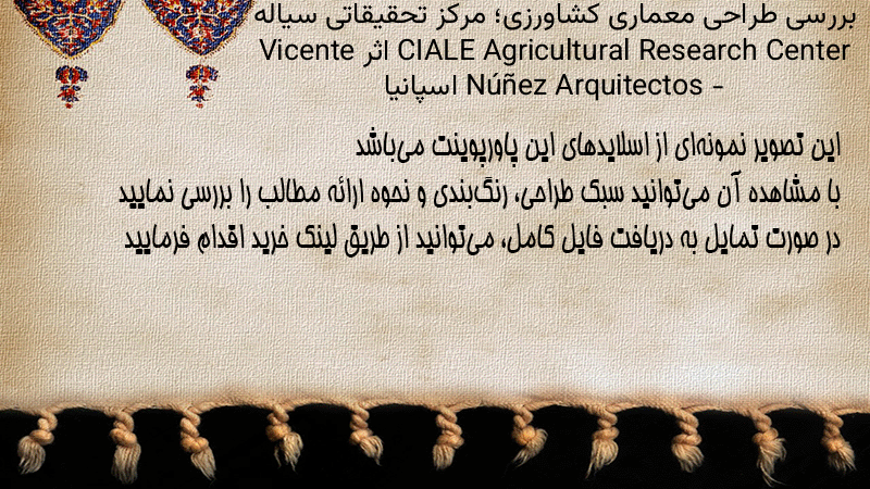 پاورپوینت کامل بررسی طراحی معماری کشاورزی؛ مرکز تحقیقاتی سیاله CIALE Agricultural Research Center اثر Vicente Núñez Arquitectos – اسپانیا