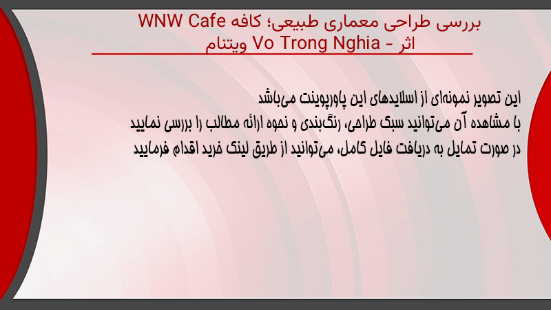 پاورپوینت کامل بررسی طراحی معماری طبیعی؛ کافه WNW Cafe اثر Vo Trong Nghia – ویتنام