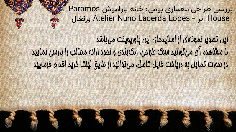 پاورپوینت کامل بررسی طراحی معماری بومی؛ خانه پاراموش Paramos House اثر Atelier Nuno Lacerda Lopes – پرتغال