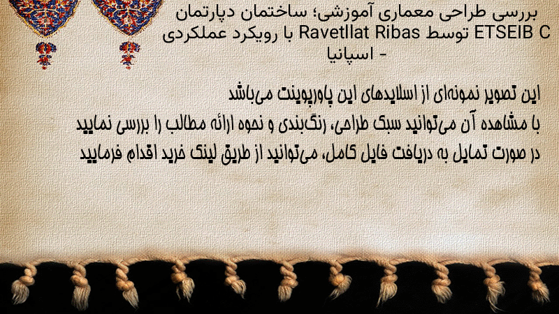 پاورپوینت کامل بررسی طراحی معماری آموزشی؛ ساختمان دپارتمان ETSEIB C توسط Ravetllat Ribas با رویکرد عملکردی – اسپانیا