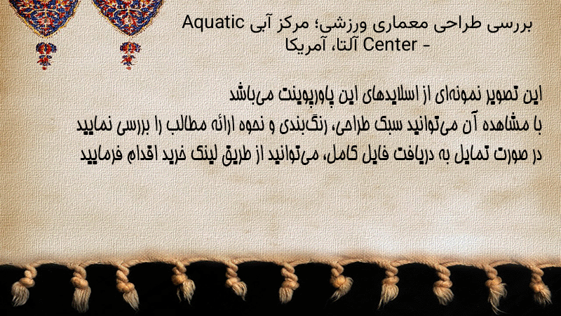 پاورپوینت کامل بررسی طراحی معماری ورزشی؛ مرکز آبی Aquatic Center – آلتا، آمریکا