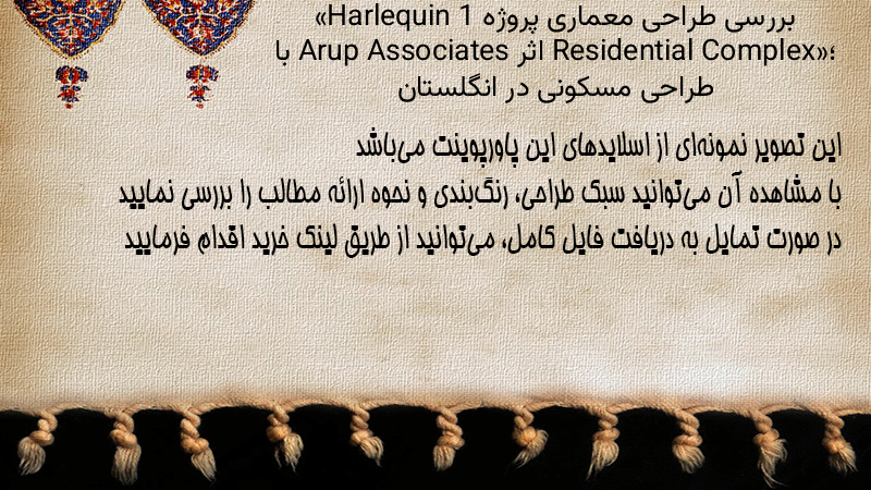 پاورپوینت کامل بررسی طراحی معماری پروژه «Harlequin 1 Residential Complex»؛ اثر Arup Associates با طراحی مسکونی در انگلستان
