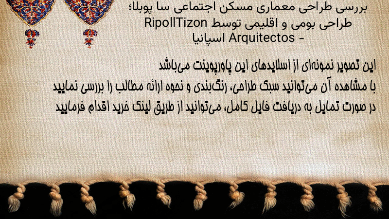 پاورپوینت کامل بررسی طراحی معماری مسکن اجتماعی سا پوبلا؛ طراحی بومی و اقلیمی توسط RipollTizon Arquitectos – اسپانیا