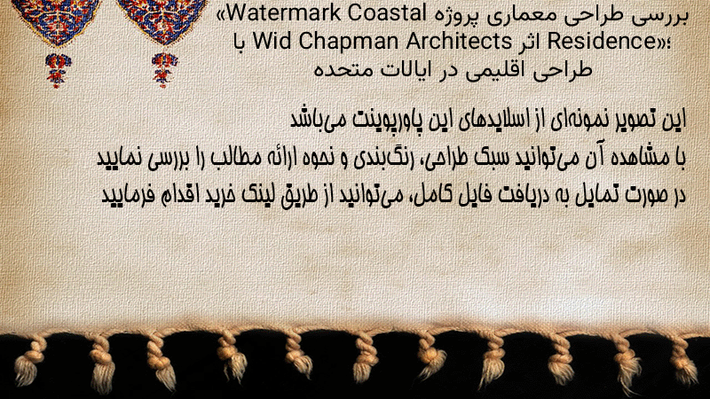 پاورپوینت کامل بررسی طراحی معماری پروژه «Watermark Coastal Residence»؛ اثر Wid Chapman Architects با طراحی اقلیمی در ایالات متحده