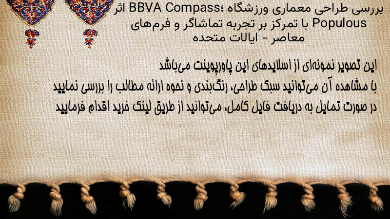پاورپوینت کامل بررسی طراحی معماری ورزشگاه BBVA Compass؛ اثر Populous با تمرکز بر تجربه تماشاگر و فرمهای معاصر – ایالات متحده